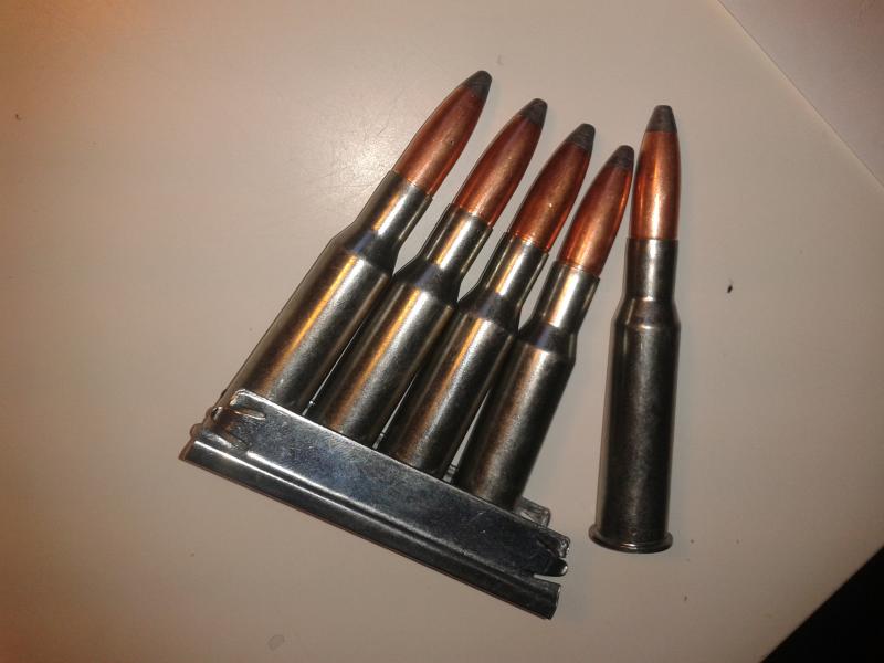 He tirado con el Una munición rusa Barnaul del 7.62x54R de 203 grains sp que me pareció una burrada cuando las compré pero que donde tocan... y recargo con puntas de 180 para caza y con 150 fmj para tirar. Se porta muy bien y tiene un retroceso muy manejable