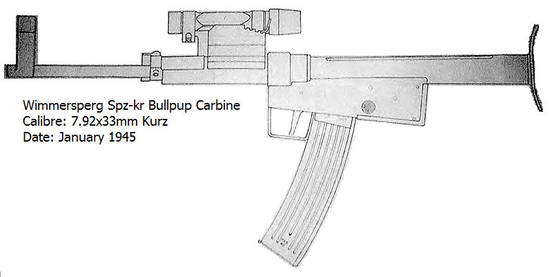 El Wimmersperg Spz-Kr, fusil de asalto tipo Bullpup, de calibre 7,92 Kurtz. Funcionaba por toma de gases, y utilizaba partes del Stg44. Se podía disparar en tiro a tiro o ráfaga, regulándose mediante la presión del gatillo como en el Steyr AUG. Algunos artículos comentan que se construyó en serie, otros que no abandonó la fase de diseño en papel.
