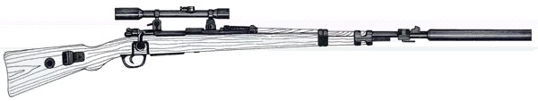 De momento no he encontrado ninguna foto de un arma real, este es un esquema de un fusil Kar98k con el visor ZF-39 y silenciador SD T3.