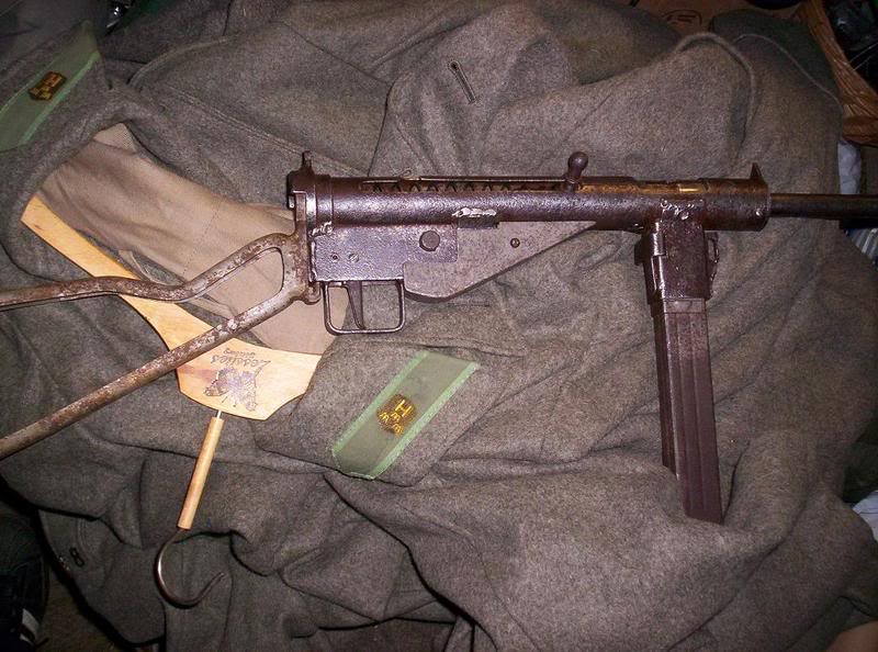 De Enero a Mayo del 45, surgen una serie de armas que los alemanes llamaron "el último recurso", en su mayoría dirigidas a los Volkssturm, milicias organizadas a toda prisa para la defensa de los últimos territorios del Reich. Una de ellas fué elfusil de asalto Spz-kr que ya posteé con anterioridad. Este es el subfusil MP3008, una copia del Sten pero con cargador vertical, que me imagino sería más sencillo de producir por estampación. Sus características eran muy similares al diseño original. También se fabricó una copia exacta del Sten con cargador lateral, esta por Mauser y con la denominación Gerat Postdam. La leyenda dice que se produjeron para armar a unidades infiltradas tras las líneas aliadas. En total vieron la luz 10000 del primero y 28000 del segundo.