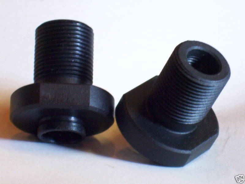 El tío éste es muy amable y me dijo que si queríamos adaptadores por ejemplo para poner en casa un silenciador de coña de airsoft por estética me lo fabricaba en M14 en dos semanas, pero que el pedido debía de ser por lo menos de 20 unidades, por lo que si hay gente dispuesta a ello se podría hacer el pedido.
