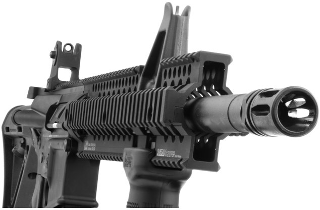 Los guardamanos de Daniel Defense son de lo mejorcito que hay. En concreto el modelo Omega X rail son de tipo flotante y se diferencian del modelo Omega (que tambien es flotante) en que el X necesita ser montado con la llave especial para barrel nut de Daniel Defense y su barrel nut especifico, mientras que el omega a secas se monta directamente sobre el barrel nut de "serie". Son los modelos de guardamanos flotantes con railes mas estrechos y ligeros del mercado. Por cierto los hay en cuatro tamaños: carbine para los M4, carbine FSP para los M4 cubriendo parte del cañon por delante del gas block, mid-lenght para los M5 y rifle para el modelo estandar.
