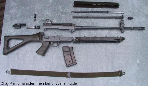 El sig era una maravilla de la relojeria. Un funcionamiento intachable.. unos materiales acojonantes. Como arma embarcada tiene que ser fabulosa por que todas las piezas metalicas tenian un acabado anticorrosion excelente... pero.... al tirar con la mano de la palanca de montar en sentido perpendicular al fusil.... te quedabas con ella en la mano y quedaba inutilizado. De hecho y si no recuerdo mal habia que quitarla para desmontar el fusil.