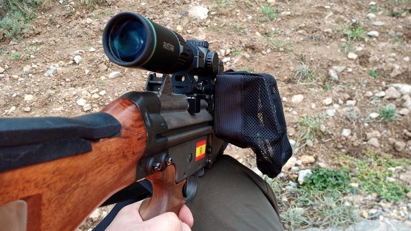 Si ya me estaba calentando con montarle un 1-6x24 ahora mas aún viendo la precisión que me acaba de hacer el aparato, en la próxima batida valoraré mejor si necesito 2 aumentos mas. El miedo que me da es que con éste, la rueda de aumentos ya está muy cerca de tocar el alza, y si le monto uno que tenga la rueda un poco mas grande me tocará montarle unas anillas aun mas altas, y estas ya son bastante altas.