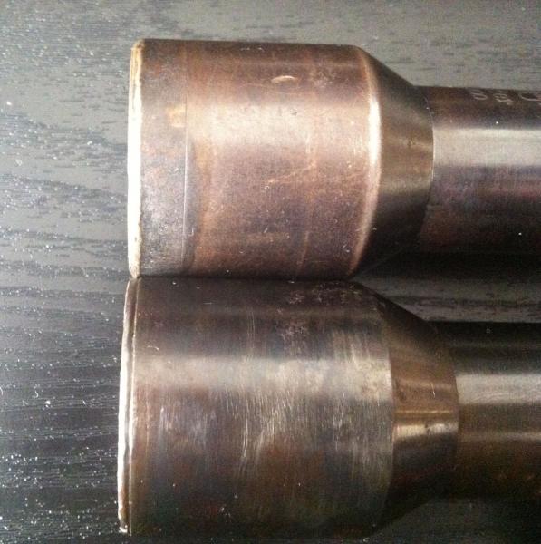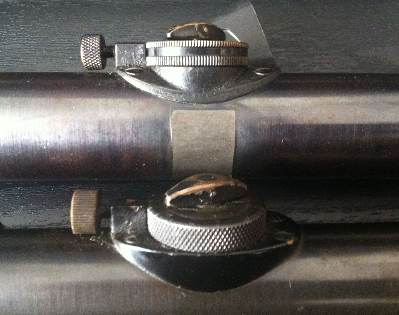 En estas otras fotos se pueden apreciar algunas diferencias entre el visor TPYCEA (abajo) y un Zeiss Zielvier alemán (arriba en la imagen) de los años 30 como los que llevaban algunos K98k de francotirador. El ocular del TPYECA es más ligeramente más largo y en la torreta de ajuste se pueden ver algunas diferencias.