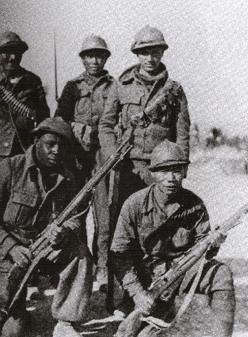 Pues sí, soldados negro, asiático,... brigadas internacionales, seguramente batallón Lincoln antes de la sangría (en ambos lados) en la batalla del Jarama.