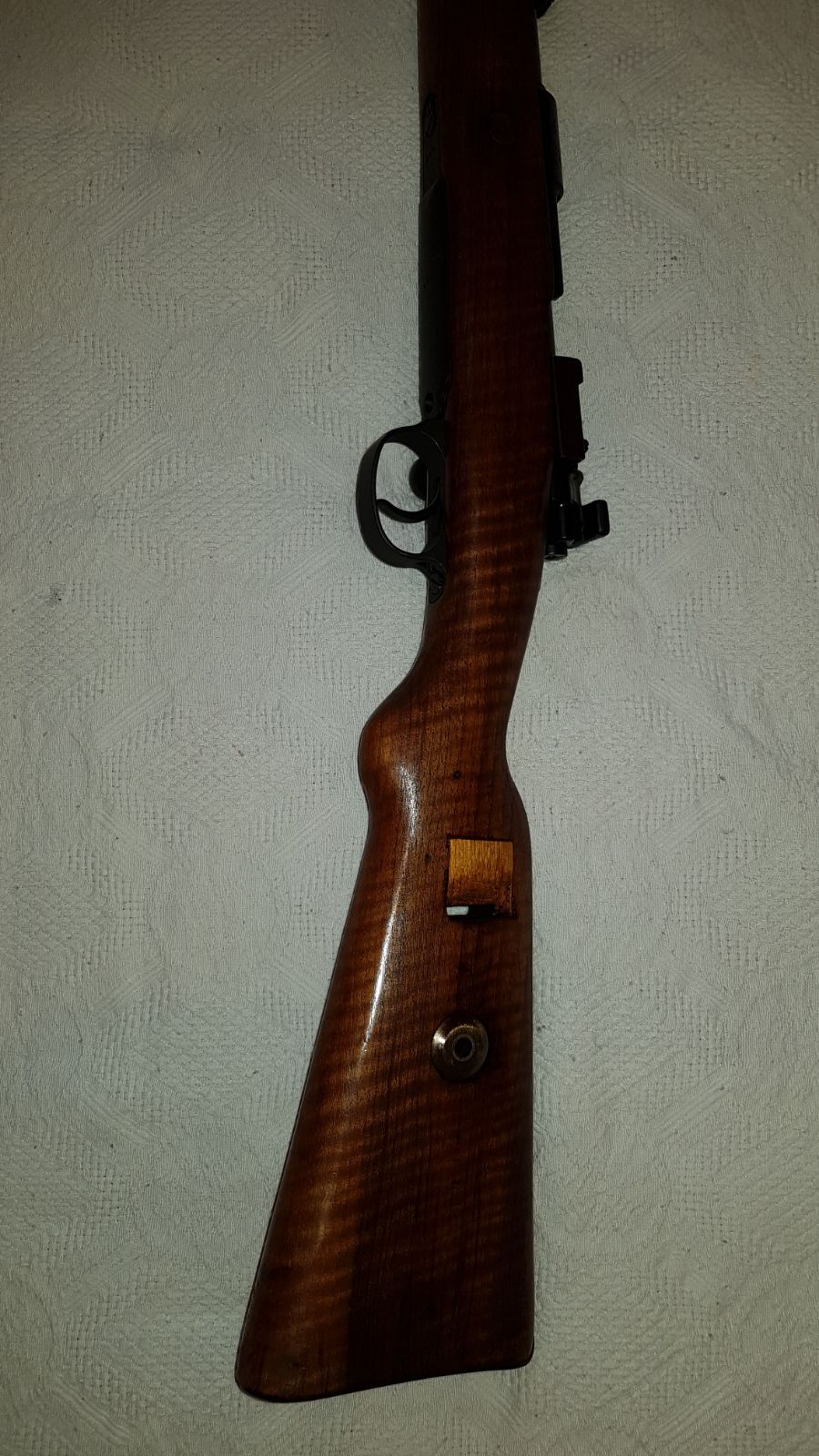 Buenas tardes a todos, yo tambien quiero contribuir aportando fotos de mi primer mauser que adquiri hace cosa de un año, el arma es coincidente en la mayoria de todas su piezas a excepcion de 3 contratornillos como se aprecia en las fotos que ahora paso y la baqueta que no lo es ademas de la numeracion de la culata que desconozco porque es diferente; la pieza en su momento me parecio un numeros coincidentes pero ahora leyendo este hilo me asalta la duda por diversos detalles (teniendo en cuenta que soy principiante en este tema). Me gustaria que me dieseis vuestra opinion. Gracias de antemano. Un saludo.