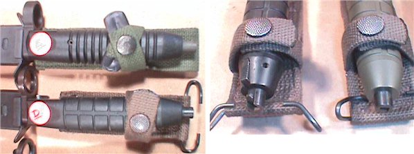 La del G3 se afianza mediante una espiga que forma parte de la propia bayoneta, mientras que el CETME C lo hace mediante una lengüeta que se introduce en la bayoneta.