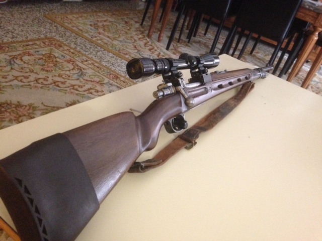 Este es el mio.Antes llevaba montado una mira TYPECA de 4x fijos.La cambie por una Redfield 3-9 con medidor de distancia de las que usaban los USA en Vietnam.