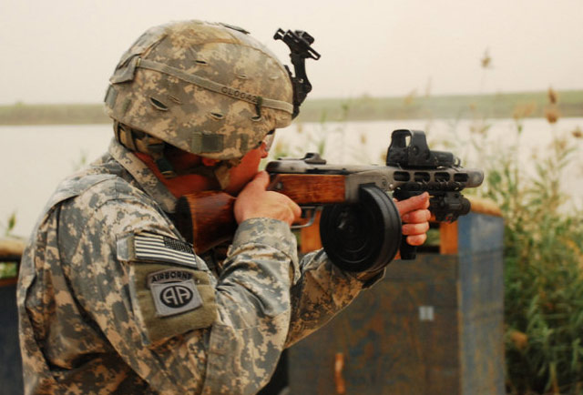 Pistolet-Pulemyot Shpagina modelo 1941, o PPSh-41. No creo que haga falta decir mucho más. Como mucho recordar su calibre, 7,62 × 25 mm Tókarev.