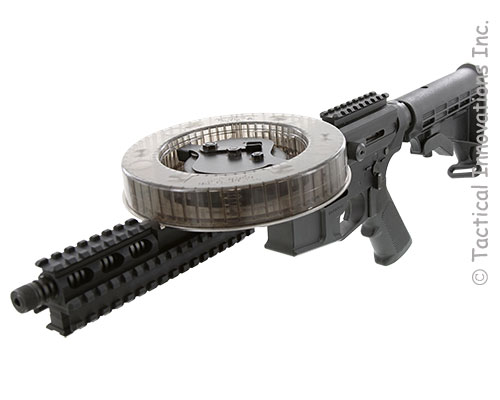 Pero todos estos son meros aprendices a la hora de vaciar un cargador rapidamente, al menos, si se comparan con el mini padre de las ametralladora Vulcán: el Subfusil Neal del 22LR con sus 3.000 dpm