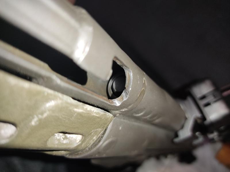 Parece que se le haya quitado algo más y tenga un poco de juego o más de un lado quE de otro.Yo cogeria la dremel y le mataría el canto(un poco redondeado) al tetón, ojo, no al tubo del cuerpo de cerrojo.Una pasadita y luego pulido y ya contarás.
