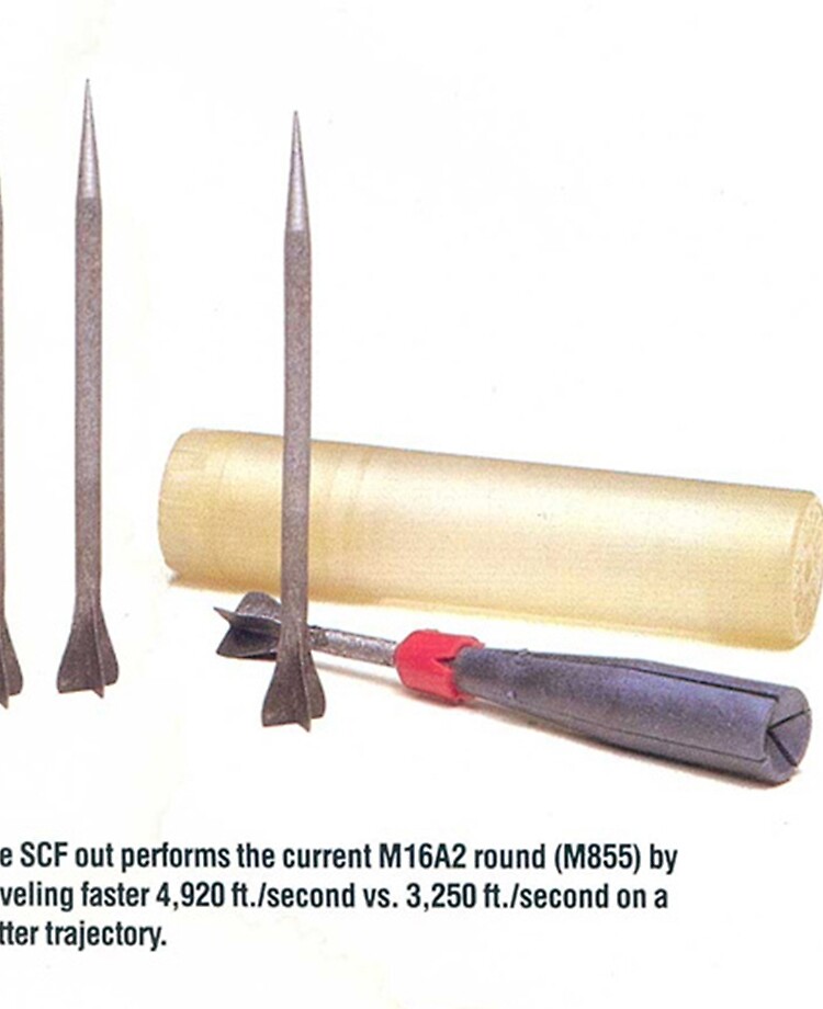 Algún dia alguien nos podria explicar que tal esta idea de dispara flechas / dardos como propone el Steyr ACR, que data del 1990, aunque la idea llega del 1980.