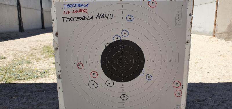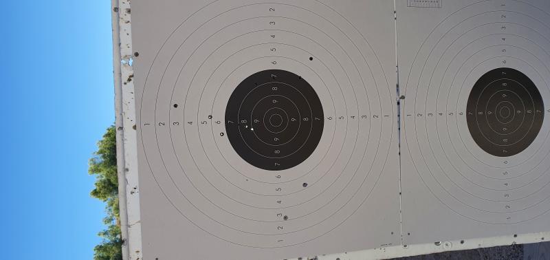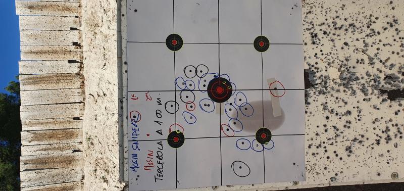 El primero se me ha ido a la izquierda por la posicion tan incomoda que he tenido que adoptar para alinear miras.