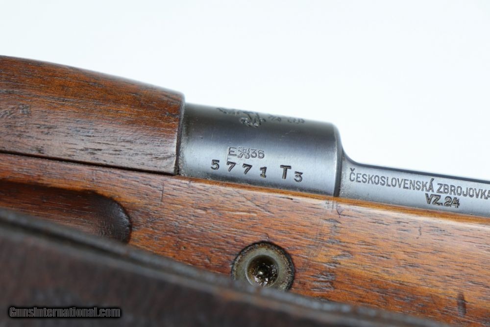 The vz. 24 was produced in Brno and Považská Bystrica (from 1938-1942). The only way to identify the production location is by the serial number pattern and the VTLU code. The VTLU code (Czech acronym VTLU stands for Vojensky technicky a letecky a letecky ustav - Military Technical and Aviation Institute, which was responsible for acceptance of Czechoslovak Army weapons) was an inspection and acceptance stamp. A Brno manufactured rifle would have a serial number as such: 1234 T3. A Považská manufactured rifle would follow this pattern: A4 2345. Code is E3-lion-37. The E3 would denote where the acceptance took place in Brno and the 37 represents the year, 1937. Here is a breakdown of VTLU codes: