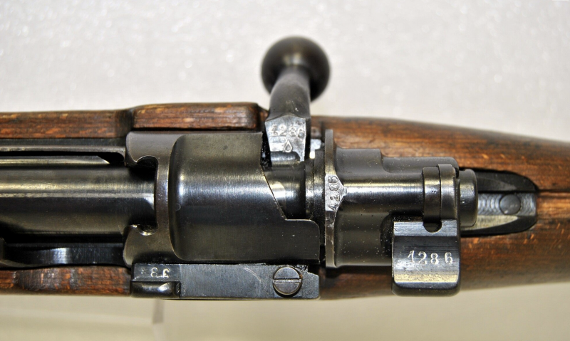 - En la pestaña de sacar el cerrojo, el waffenamt con el 4 indica que pasó la certificación en la fabrica de Berlin-Sühler Waffenwerke, Suhl, 1937-39, y el 93 de los últimos dígitos de serie del rifle original donde iba la pieza. ¿Pero qué significado tiene la "K"? Encontré algo sobre la Firma Luch uWagner, que también estaba situada en la ciudad de Suhl. ¿Puede estar relacionado?
