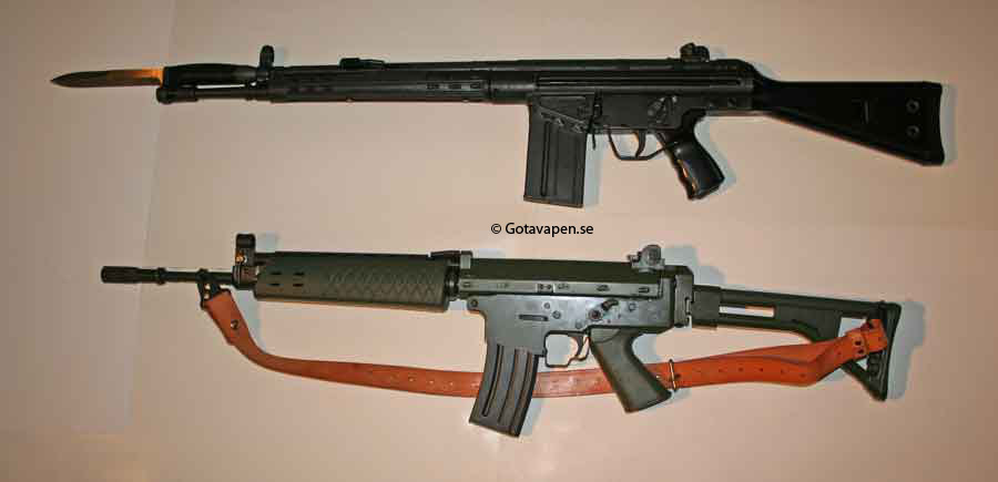 Suecia dispone del AK5 (una versión del FNC Belga), y alguna cosa tiene del AK4 (un HK G3/CETME B o C):