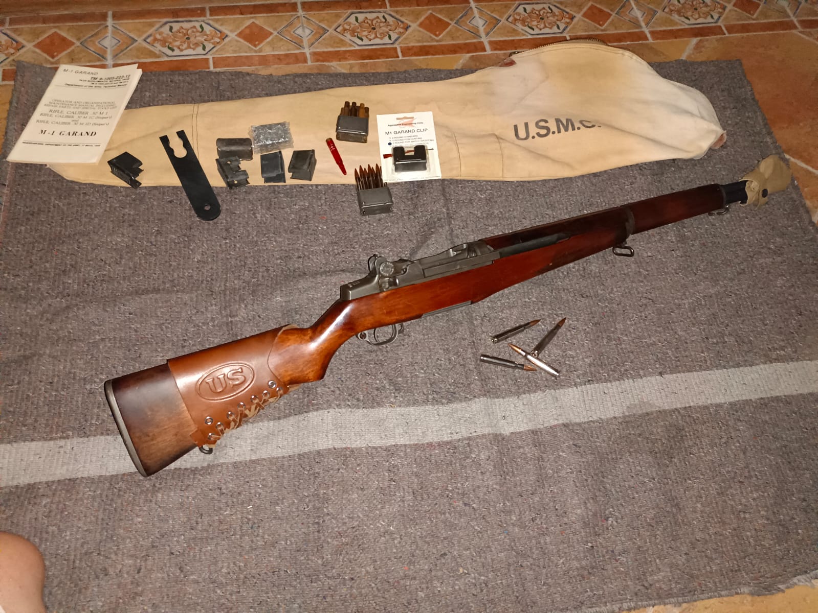 Bueno pues ya tengo trato, 1400€, me da también dos cajas de 20 cartuchos 30-06, 8 cargadores del garand, uno de ellos de 2 cartuchos para ser legal y los demás de 8. también me da funda original del USMC y la correa de algodón original así como una herramienta de limpieza me comenta original de garand.Cuando lo tenga haré presentacion, un saludo amigos gracias