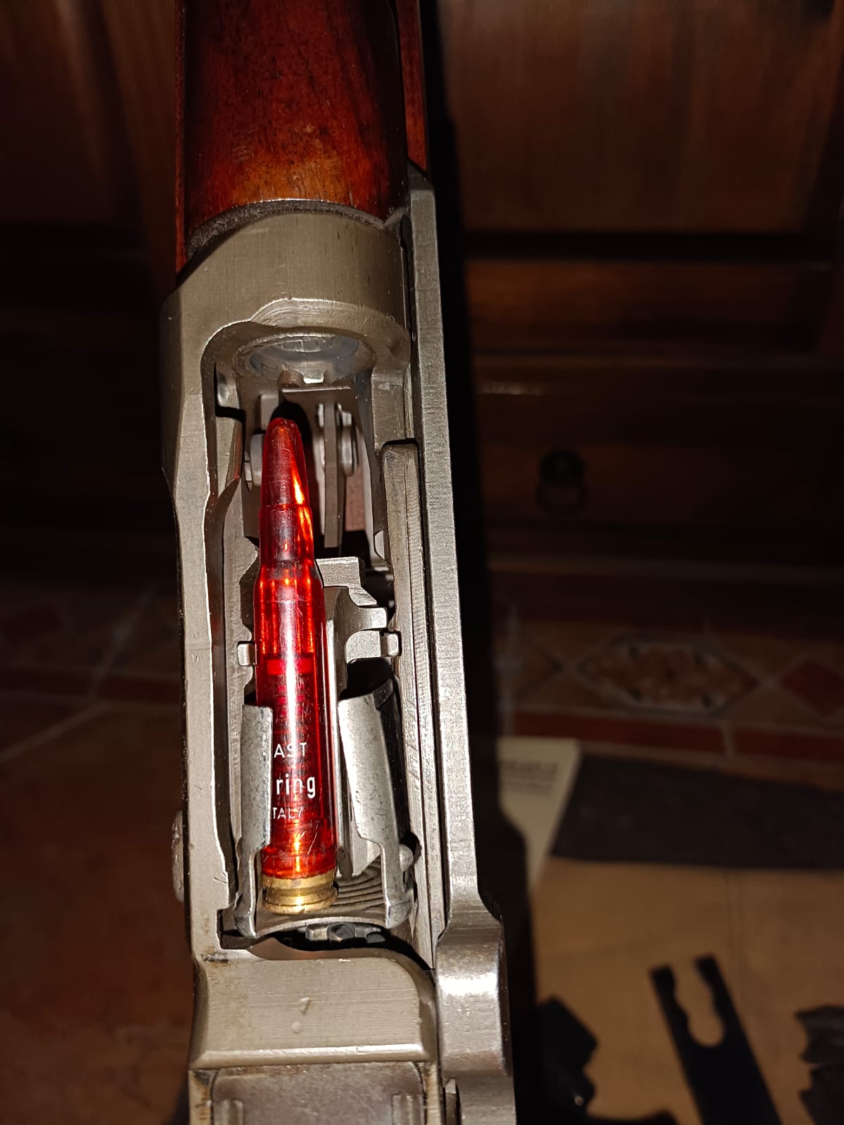Sobre lo que comentas de que rompa, estate tranquilo,un amigo tuvo un garand durante muchos años, yo lo usé para cazar, recargaba y hemos pegado miles de tiros, tanto comercial como factory y jamás dio una interrupción problema o rotura.