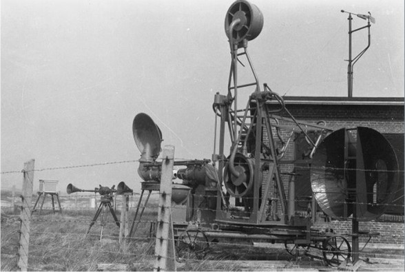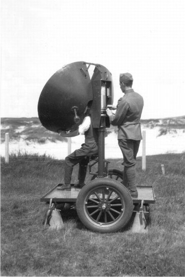 Estos son “sistemas” de localización de aviones, por sonido, desarrollados en los inicios del siglo XX y empleados aun, algunos de ellos hasta casi mediados de la II G.M.