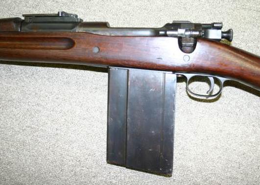 Un rifle muy poco conocido: el Type 5 japonés (o type 4 en algunas fuentes). Fué uno de los varios intentos del régimen japonés de producir un rifle semiautomático a finales de la Segunda Guerra Mundial. Posiblemente estuviera inspirado en el M1 Garand. Funcionaba por toma de gases y cierre rotativo, y albergaba los 10 cartuchos calibre 7,7x58 Arisaka en un depósito interno rotativo. Se municionaba de forma parecida al Garand, con clips de 5 cartuchos.