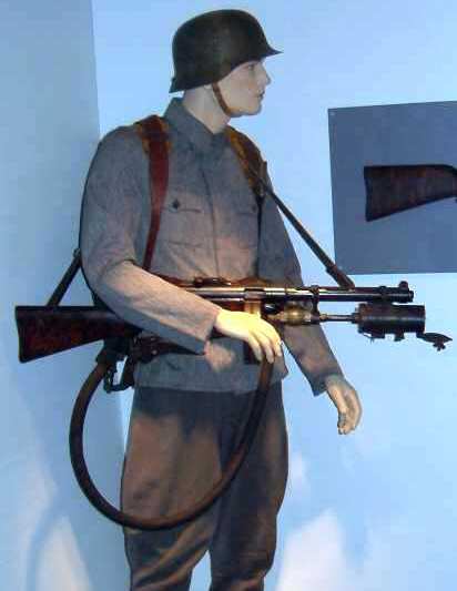 Ya que sacas el tema, fijaos en este lanzallamas portatil de un solo uso desarrollado por los nazis al final de la SGM.