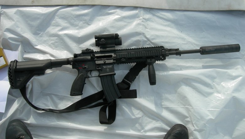 No hay una version del HK 416 con un apagallamas que evita esto?