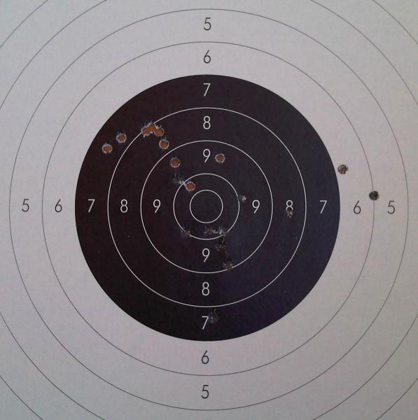 Considera que 100 metros está por debajo del rango efectivo de tiro de un arma de este tipo (4000 Julios), te pongo una foto de un blanco con mi Mauser Coruña 98/43, 100 metros con miras abiertas (he empezado a tirar con el este mismo año, no tengo ni put.. ide..), ¿crees que necesita un visor para tirar a 100 metros?, para cazar y asumiendo las condiciones de estres que se viven (y lo que cuesta un puesto por que no), quizá, pero en una cancha de tiro, no.