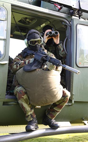 La versatilidad de un tirador en un helicóptero, no tiene competencia y da la posibilidad de alcanzar certeramente múltiples amenazas entrando y saliendo de la zona de responsabilidad, dando cobertura a otros medios aéreos o terrestres y evitando al máximo bajas no combatientes es ventajoso.