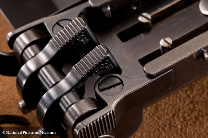 En la Web de dicho museo aparece mayores descripciones de la misma y algunas fotos que adjunto, no creo que en la fabulosa colección de que disponen que se permitan mantener algo que no sea original. En las siguientes fotos aparecen mas marcajes incluido el calibre y la caja original de las mismas con el nombre del inventor. Un saludo y sobre todo muchas gracias por vuestras aportaciones.