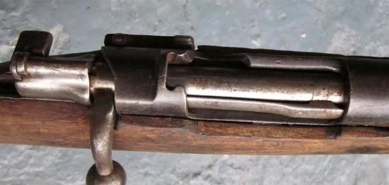 Me han pasado las fotos pero yo no se cual es, el alza es como la del Mauser 1898, pero este cerrojo es curvo en vez de recto y tampoco tiene la aleta del seguro típica de los Mauser (no se si le falta o no la tiene). No entiendo mucho del tema, y no se si se trata de otro modelo o de un fusil hecho con retales.