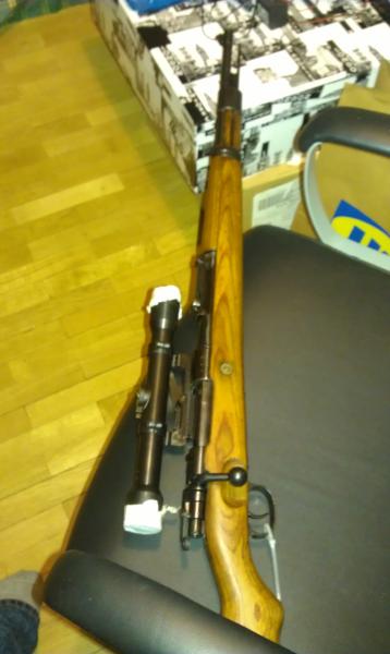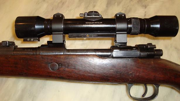 En general, para simplificar, considera cualquier K98 de francotirador que salga por ahí es una réplica hasta que no quede contrastado por gente que sepa y entonces prepara la cartera, jejeje. Yo tengo leídos 3 libros sobre el tema de los K98 sniper y sólo sé lo más general. Usaron muchos tipos de visores y monturas con variaciones y subtipos dentro de los tipos, etc… Un lío, vamos. Si quieres tener un K98 de francotirador puedes, una buena réplica ( no una con cualquier montura y un bushnell…) con visor alemán de la época (no son baratos) y unas monturas copia de las que más te gusten de las originales y a pegar tiros. Y pueden llegar a ser tan precisos como uno de francotirador. Hay que comprobar antes de hacer la réplica que tira bien, claro.Los K98 que capturaron los Soviéticos tienen las piezas mezcladas y repavonadas pero siguen siendo alemanes y originales de la SGM. En mi opinión los rusos hicieron un gran trabajo salvando de la fundición miles o millones de K98 y gracias a ellos los podemos tener ahora a precio razonable. Los K98 se acababan y ajustaban a mano, por lo que sea capturado u original, después de 70 años para que tiren bien requieren revisar un poco el acople entre las maderas y el metal y que no haya contactos asimétricos, etc…Bueno, como cualquier Mauser. Este es uno de los míos, un Sauer del 35 (captura rusa), le conseguí una culata de nogal de su año.