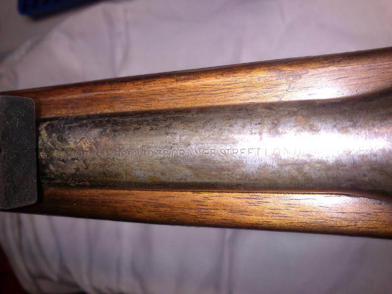 En lo alto del cañón entre el alza y el cerrojo, tiene grabado lo siguiente: "CHURCHILLGUNMAKERSILTD32ORANGE STRFFTLONDONW....."