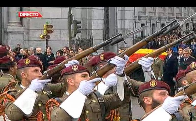 Por cierto, en la retransmisión también vi algún FR-8 (no en las salvas), incluso de los soldados que custodiaban el féretro en la capilla ardiente había uno o dos Mauser que tenían el cerrojo pavonado, por lo que me inclino a pensar que podrían ser también FR-8.