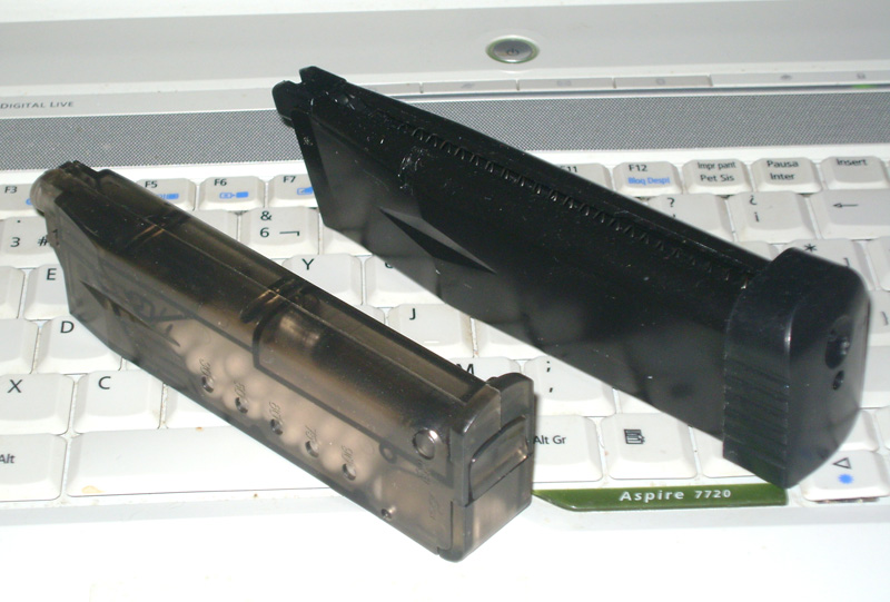 Mekong escribió:En los cargadores Hi-Cap las bolas van en en depósito, que como bien dice The_Bull, hay que cebar con la ruedecita inferior; conforme se vacía el cargador, las bolas al moverse golpean las paredes del depósito (cargador), y producen un sonido al que solemos llamar "las maracas".