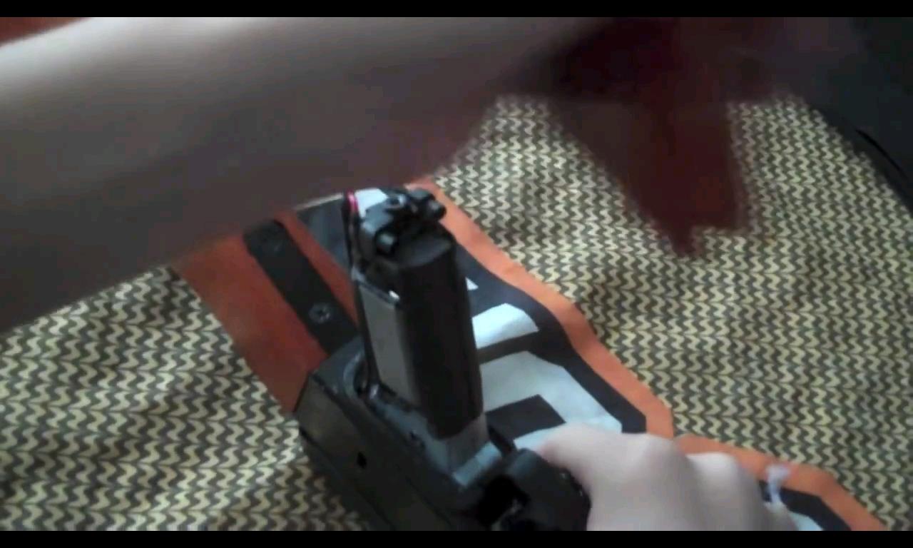 Lo primero que me choca es coloco la bateria que trae, de nimh de 7 elementos y 1400 mah, la conecto, pongo la replica en modo disparo semi y aprieto el gatillo apuntando a unos cartones por si acaso. El resultado es que no pasa absolutamente nada.