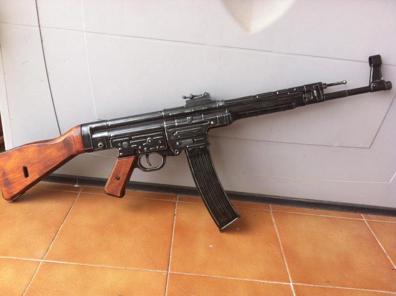 El MP40 no he tenido aún tiempo de darle el toque de envejecido, el StG44 me quedó así. Hay quien lo gasta más, yo sólo quería que tuviese un toque, que no pareciera recién pintado que es como llega.