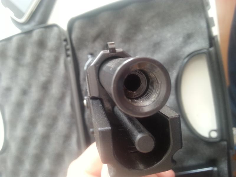como se puede apreciar en las fotos, la obstrucion que lleva delantera, que reduce el calibre para tener presion para el retroceso, y luego a la altura de la recamara cruceta de acero muy ancha que casi ocupa todo el cañon