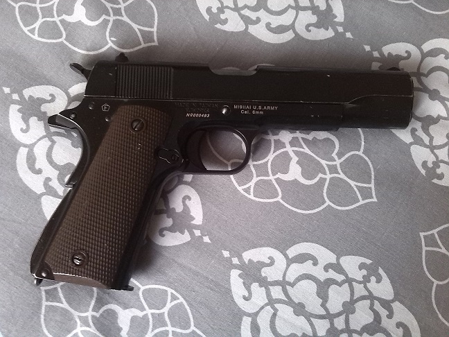 Si buscamos una buena opción en airsoft para decorar y monotear de vez en cuando, la 1911 de KSC(Taiwan version), toda metal, bastante bien conseguida y no es del todo cara, se puede(o se podía) comprar en España a unos 150-70€, en Ásia cuesta menos, pero con el cambio euro-dolar y la potencial parada en aduanas, casi no compensa.