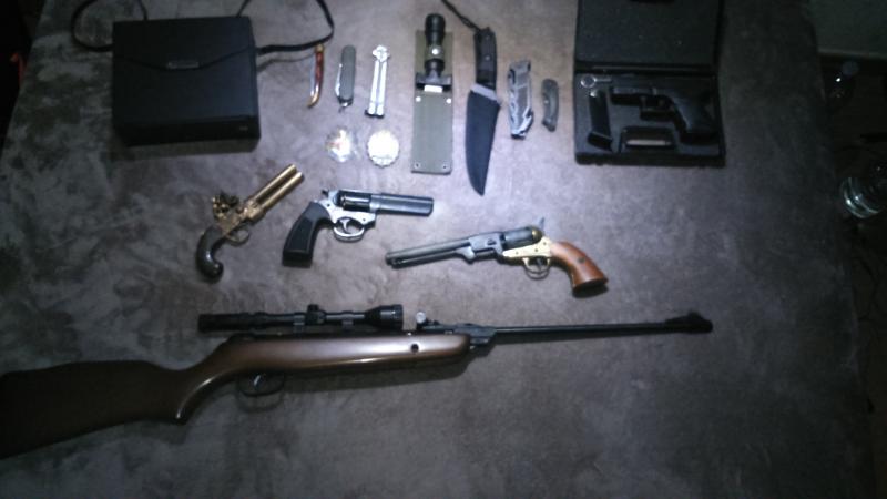 Buenas a todos, apenas llevo unos días en el foro asique e decidido enseñaros parte de mi colección de armas variadas y relacionados con estas, digo parte porque muchas no las tengo ahora mismo conmigo y otras no se deben enseñar jejeje, deciros que llevo coleccionando armas de cualquier tipo desde que era bien pequeño algunas están viejas, otras más nuevas y en fin lo típico. Aquí dejo fotos de las de mejor apariencia de las que tengo a mano ahora