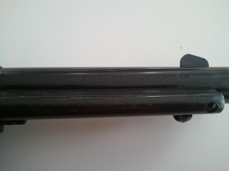 Hola compañero, según el PTB que lleva y como bien indica el amigo truenoblanco, se trata de un revolver de fabricación alemana, el PTB 241 coincide en concreto con el modelo 121 del fabricante HS - H. Schmidt Waffentechnik, Ostheim (Rhön), en calibre 9 mm R Knall.
