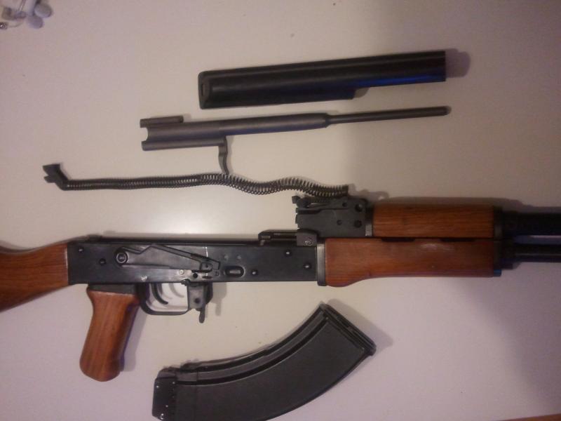 por fin, despues de mi larga espera he decidido comprarme el ak 47, he obtado por el de co2 4,5 de cybergun, bueno, cybergun solo lo pone en la caja, dentro es un autentico ak, no es ninguna copia barata, y hay barias pistas en el arma que lo afirman, lleva 2 numeros de serie uno grabado nuevo, como que es de co2 junto con la F dentro de un rombo, y otro mas antiguo, ya que el nuevo esta sobre el pavon y el antiguo no, las maderas y sus marcas, y el metal que va marcado como de uso, yo creo que son ak comprados como chatarra a bajo precio y restaurados, lo unico nuevo es el cañon, ya que es de 4,5, pero mas bien parece un cañon virgen que no a sido calibrado al 7,62 este fusil para mi es lo mejor que he visto en co2, y comparado de cerca con uno inutilizado no veo diferencia alguna, les envio unas fotos, aunque no de mucha calidad