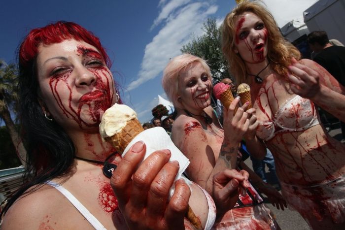 No me las llames zombis que son muy sensibes, es que venias manchadas de sangre de a dura batalla y matan muy bien a mano.