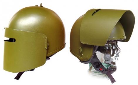 es el casco Maska-1 y dicen que aguanta un el impacto de un 7,62 , tiene otra versión que tiene una visera con una pequeña abertura para dar mayor protección , por lo visto estos son cascos solo usados en intervenciones puntuales pues la tropas no los pueden llevar de continuo por su alto peso provoca problemas cervicales si se usan de continuo.