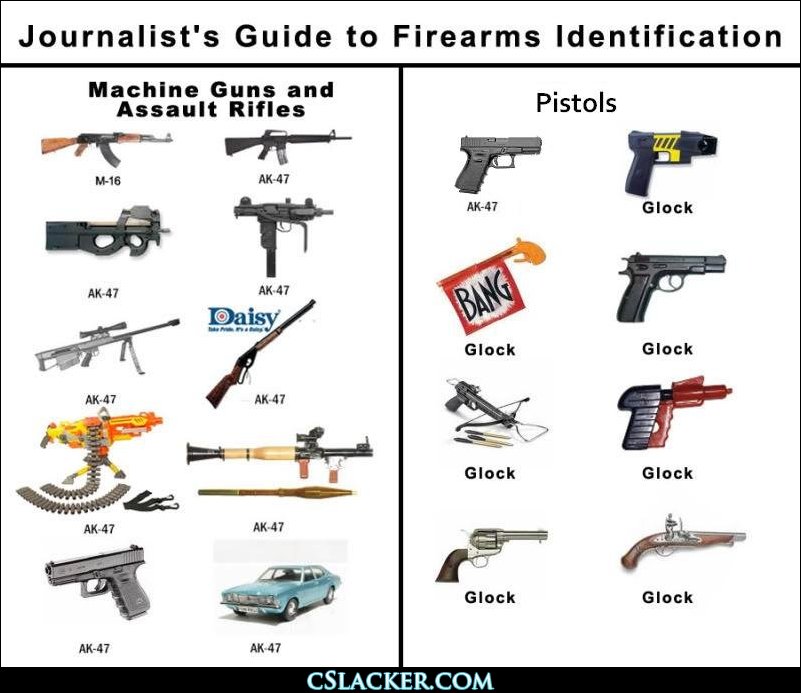 Eso es en USA, en España cambia AK47 por metralleta y lo mismo.