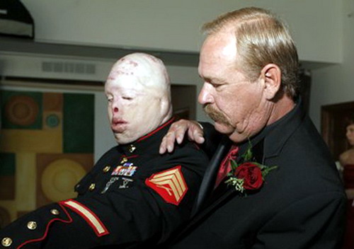 Para que veáis que se trata de quemaduras, comparadlo con la de este marine herido en Irak.
