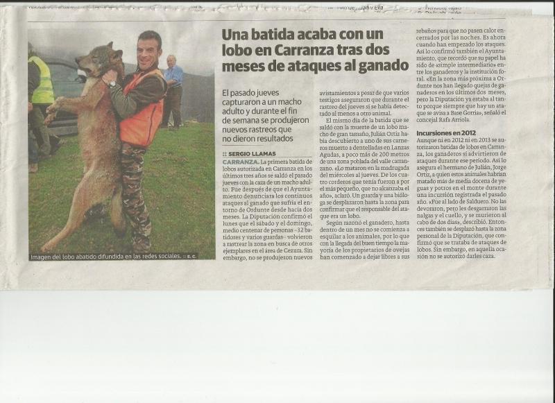 Este tenía aviesas intenciones, menos mal que fué interceptado en Carranza, muy cerca de Ramales de la Victoria, podría haber hecho mucho daño en nuestra cabaña ganadera de ovino.