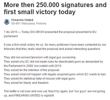 Las pequeñas batallas tambien cuentan, hoy hemos tenido una pequeña victoria en el tema de la restriccion de armas (semi automaticas) en Europa