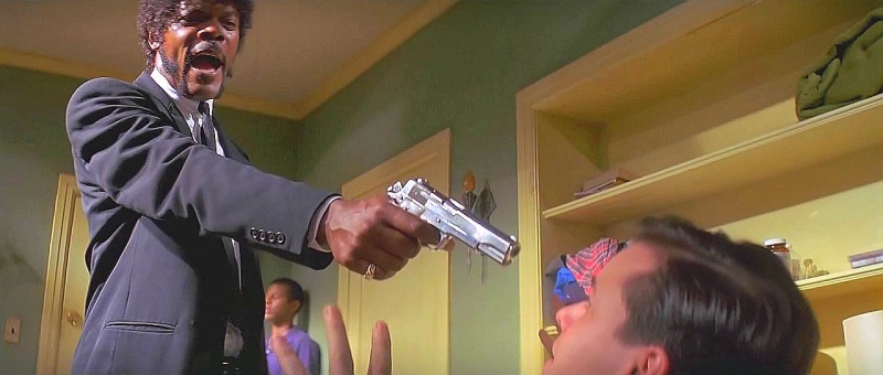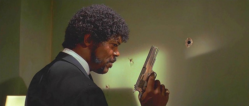 Como curiosidad, en la peli, el amigo de Vincent, el negro, no empuña una Colt 45, como muchos creen, si no, una querida, y muy española Star B niquelada..........