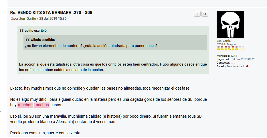 yo he vendido cosas y comprado aun mas en este foro,siempre sin problema,podra estar el arma mas o menos usada, apreciar daños que en la foto no se ven.....pero ocultar algo de lo que se es conocedor y dar mil contestaciones sin aclarar el por que de esa base asi, si el arma esta bien.A parte, que hay que tener el decoro de ofrecer una solucion comun....